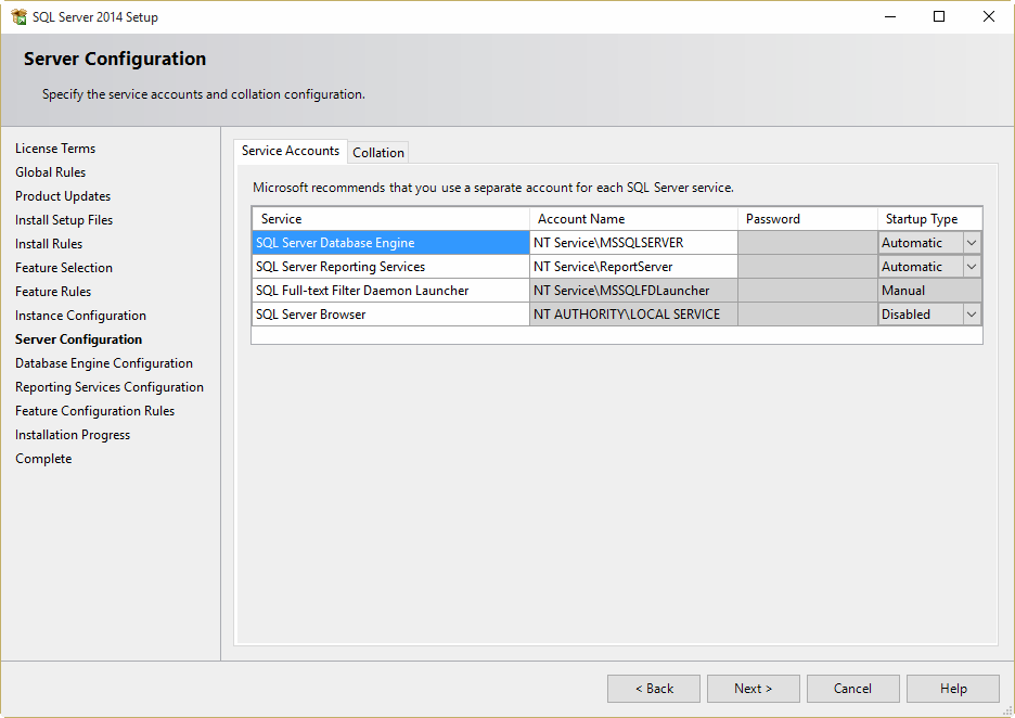- Select SQL Server Database Engine under Server Configuration (Figure 4.1) (should be selected by default)