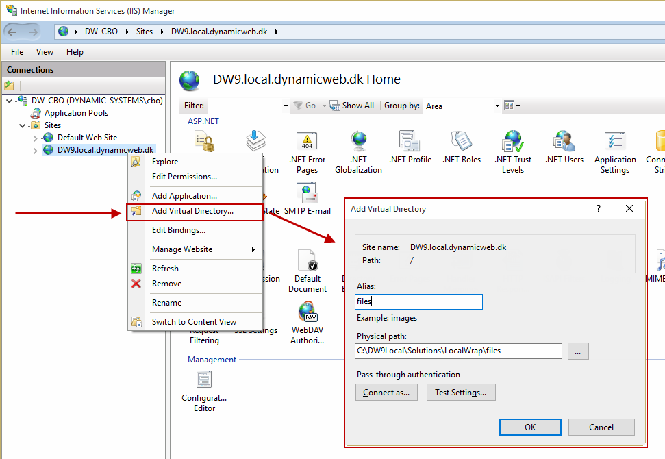 - Create a virtual /Files directory for the solution in IIS manager and point it to the downloaded /Files folder