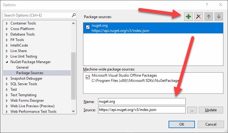 - Open the NuGet Package Manager settings and add https://api.nuget.org/v3/index.json as a package feed (Figure 3.2)