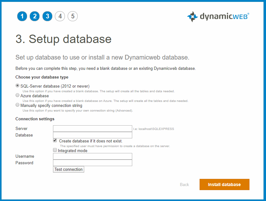 When everything is in order you can install the Dynamicweb application – there are basically two ways: