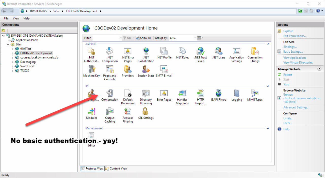 Please also make sure that Basic Authentication is not installed or if it is, then that it is disabled for the website (Figure 5.2).