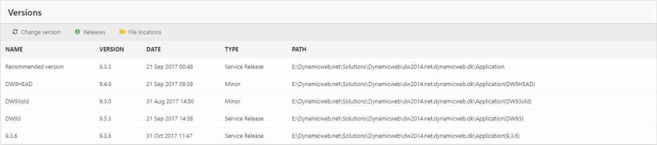 You will see a list of available versions, along with some related information – release dates, type, etc.
