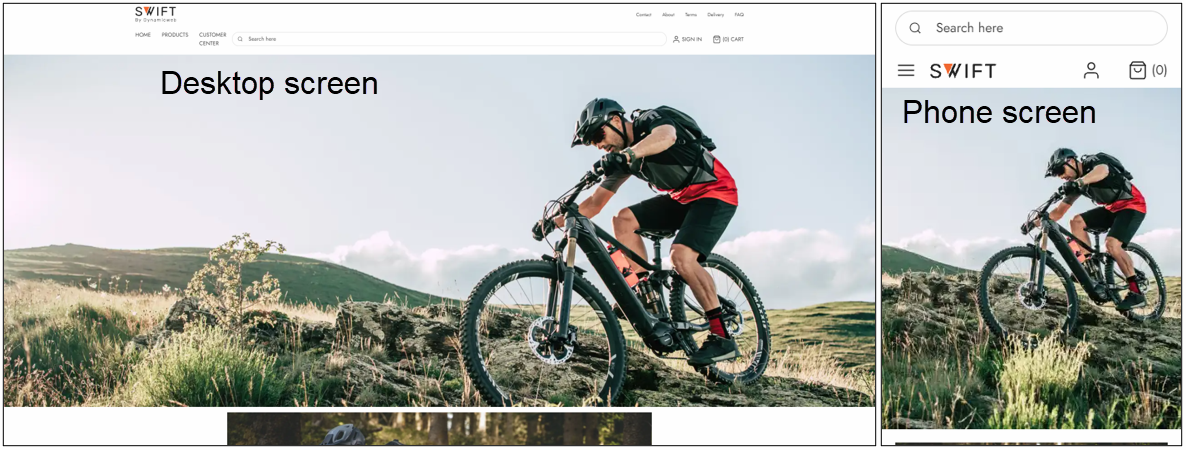 Swift works on both desktops and phones sized screens. This is possible because Swift automatically adapts your content to the size of the screen. This is also why you should use the image focal point cleverly, as some images will be cropped to fit the smaller sized screens on phones (Figure 2.1).