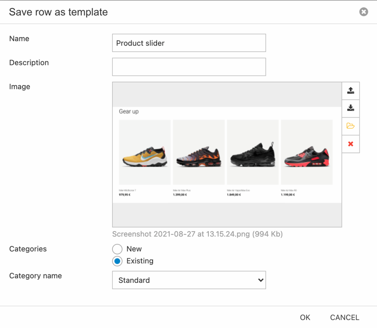 To make the editor process as smooth as possible we suggest that you make presets of the different rows. The “section divider” row would be ideal to make a preset of as the editor might not figure this one out themselves. To create a new preset, follow these steps: