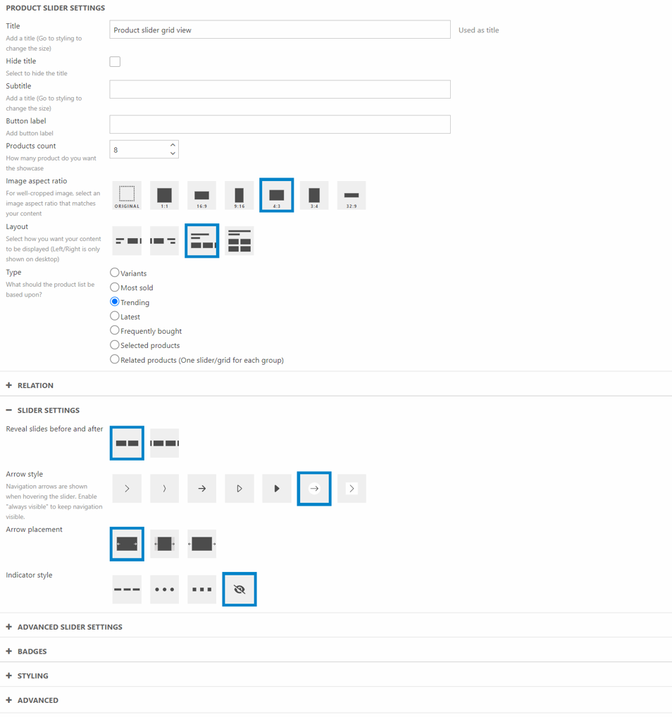 - Add a Product Slider column to the row – then configure it (Figure 2.2)