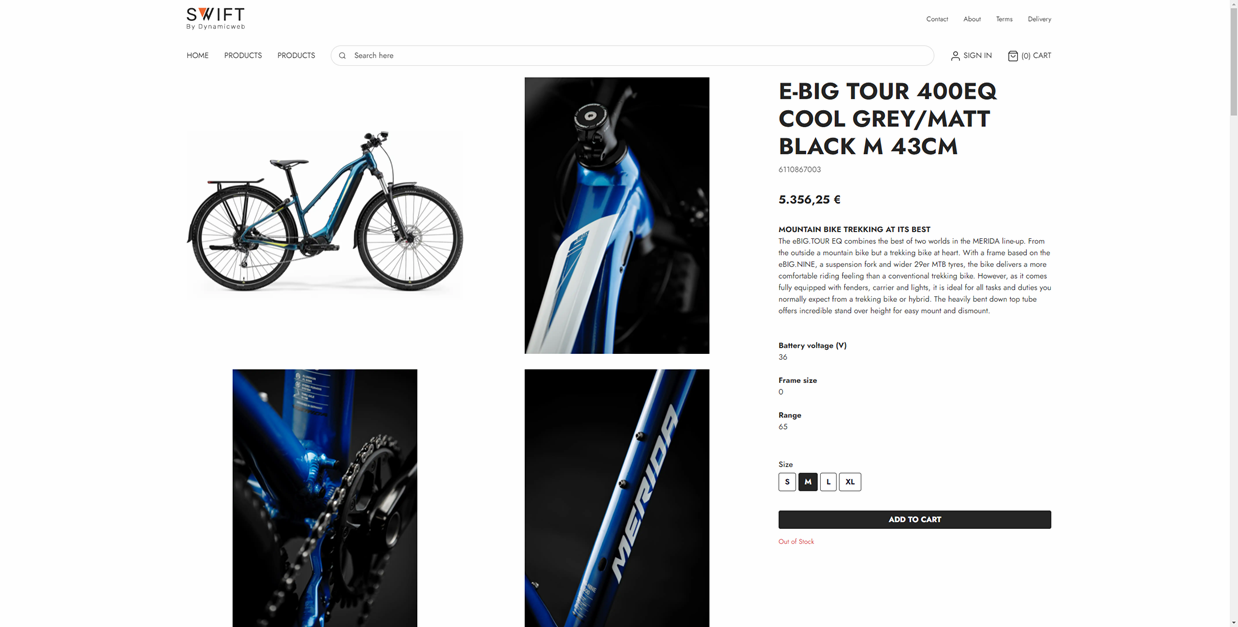 The Swift example website ships with a product details design which shows off a single product to a customer, with more information and more product images than shown on the product list (Figure 1.1).