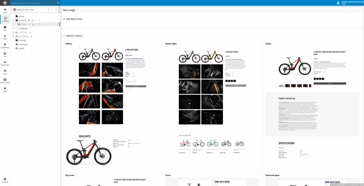 If you want to explore more of the options available to you when using Swift you can use one of our page presets (Figure 3.1) to create a new product details page.