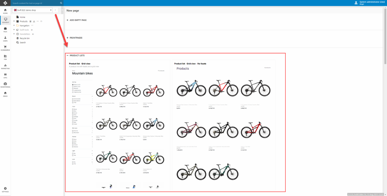- Create a new page using the Product list page type in the root of the website and call it e.g. Products