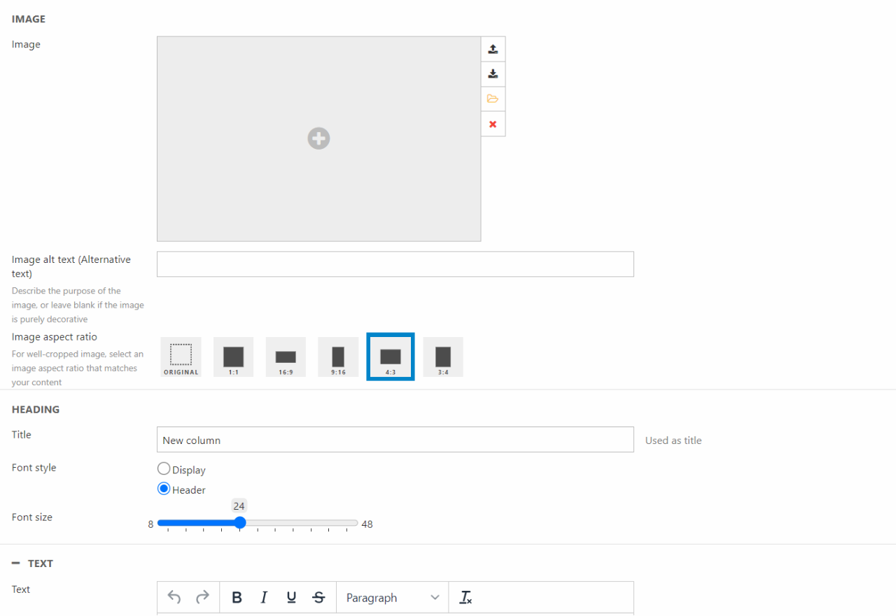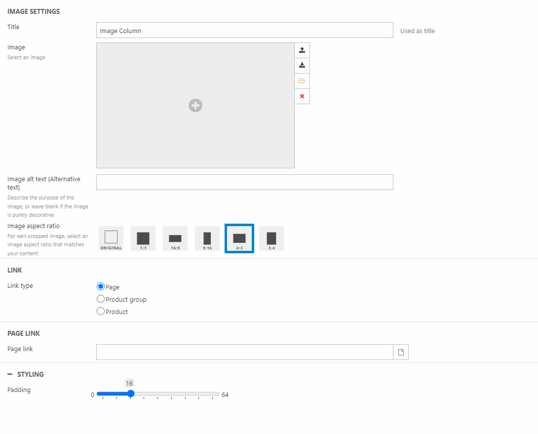 The image column is used to display an image. It can also be linked to a page, product group or a specific product.
