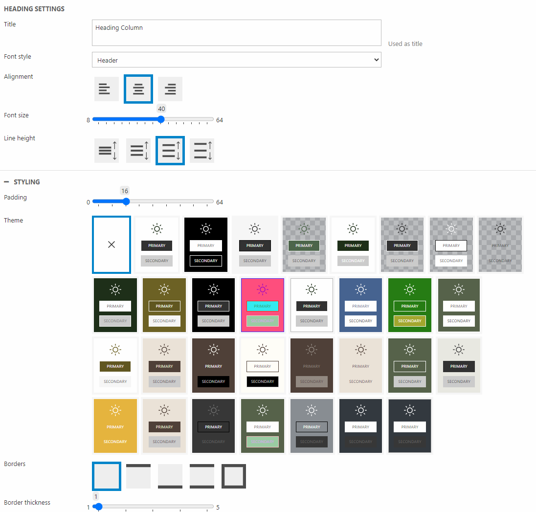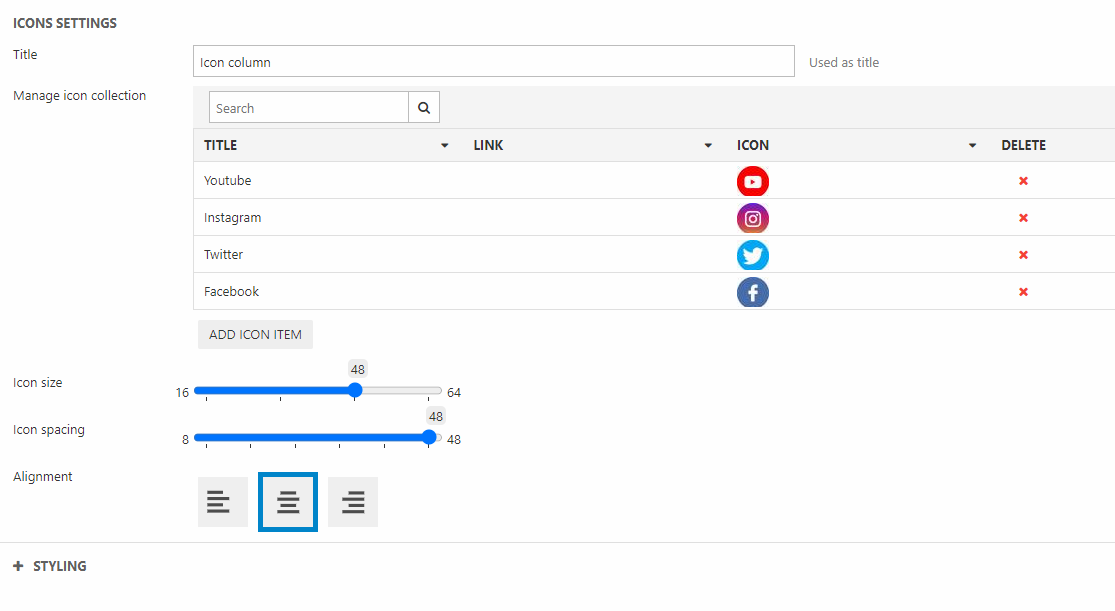 The icon column has two kinds of settings pages, the general setting page, and the setting page of each icon item.