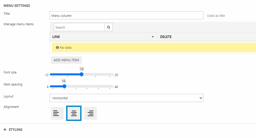 The menu column is like the page content column navigation. The column is a collection of links that can be placed either vertically or horizontally.