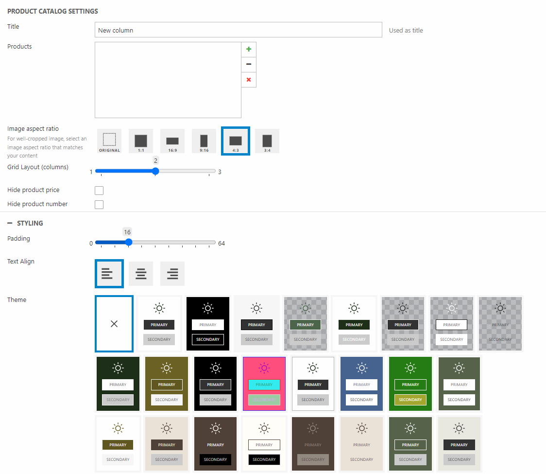 - Select the grid layout – choose if it should be 1, 2 or 3 columns of products