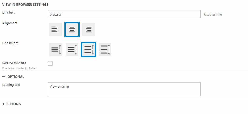 The view in browser column is, as the name suggest, giving the readers an opportunity to open the email in a browser instead.