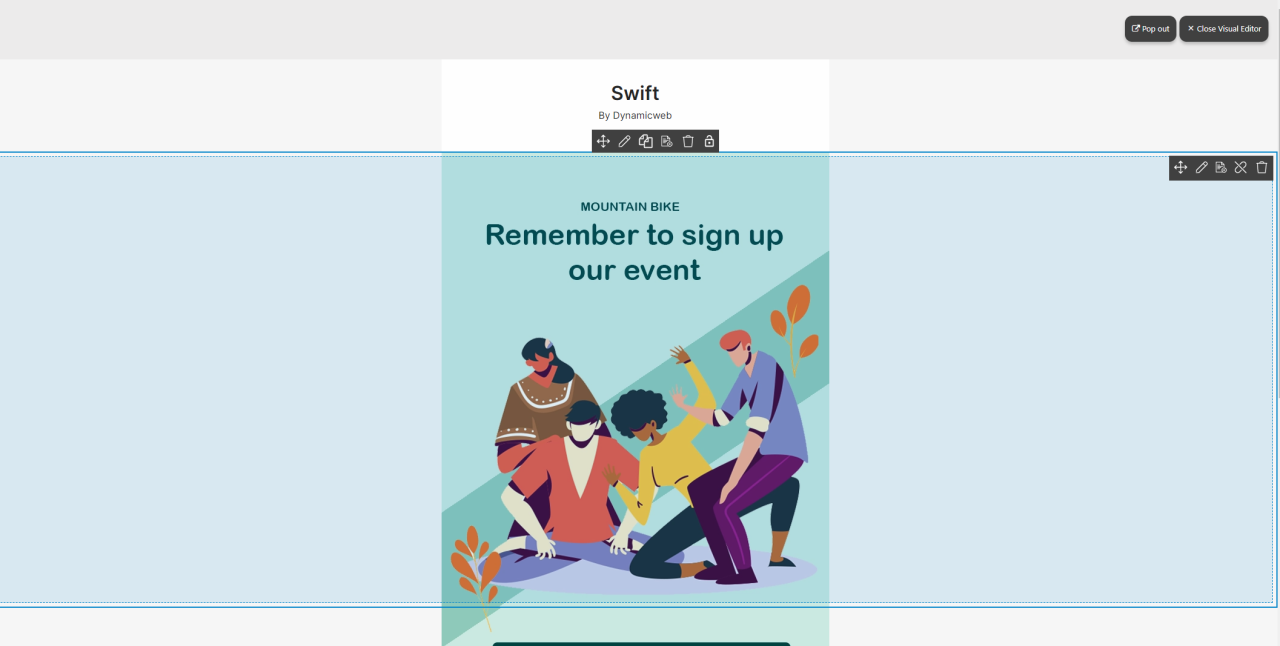 In the same way as all other emails, this email uses a predesigned header and footer, meaning the only thing to design is the actual content of the email.