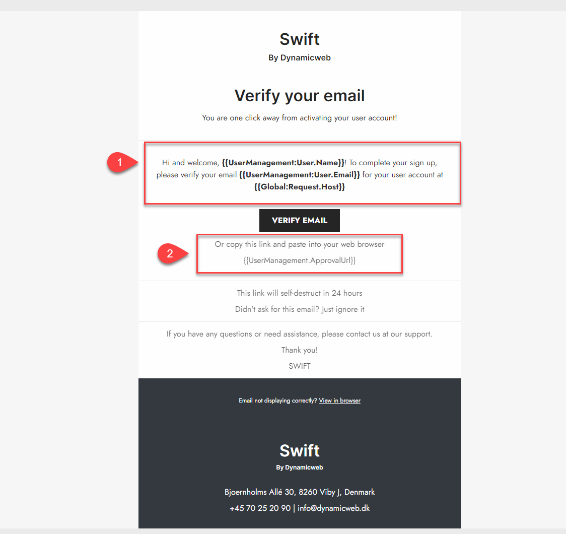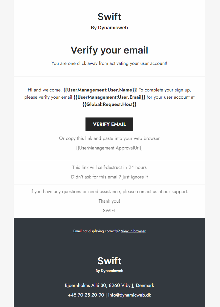 This is just one example of how to use the Swift email concept to ease the process of creating emails for customers. If it still seems a bit confusing, we recommend reading the manual setup guide, as this hopefully will help you understand how the concept works.