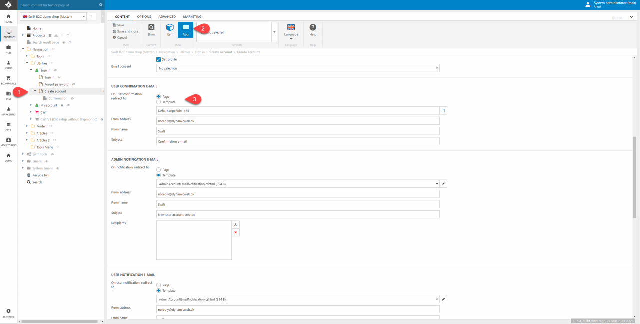 System emails are mainly used instead of existing templates. If we keep the verification email example above, this should be linked in the in the Extranet.