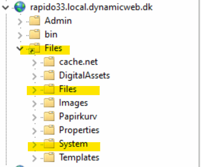 hese match the structure of the file archive in Dynamicweb, so if you have access to the file system on the server, you can just copy these to the root of the Files virtual directory created earlier: