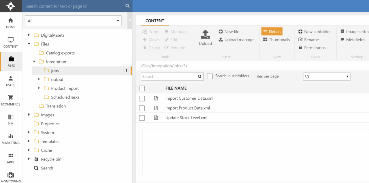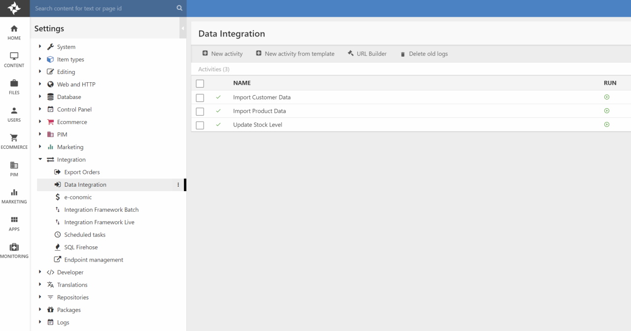 • Data Integration jobs that saves data to, or extracts data from the Dynamicweb Database