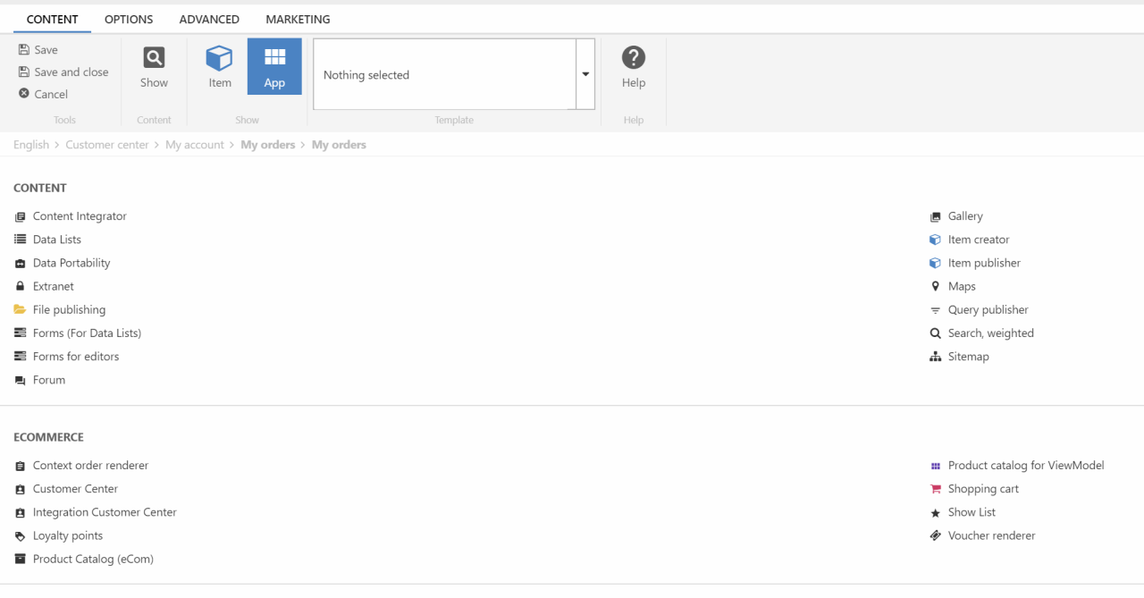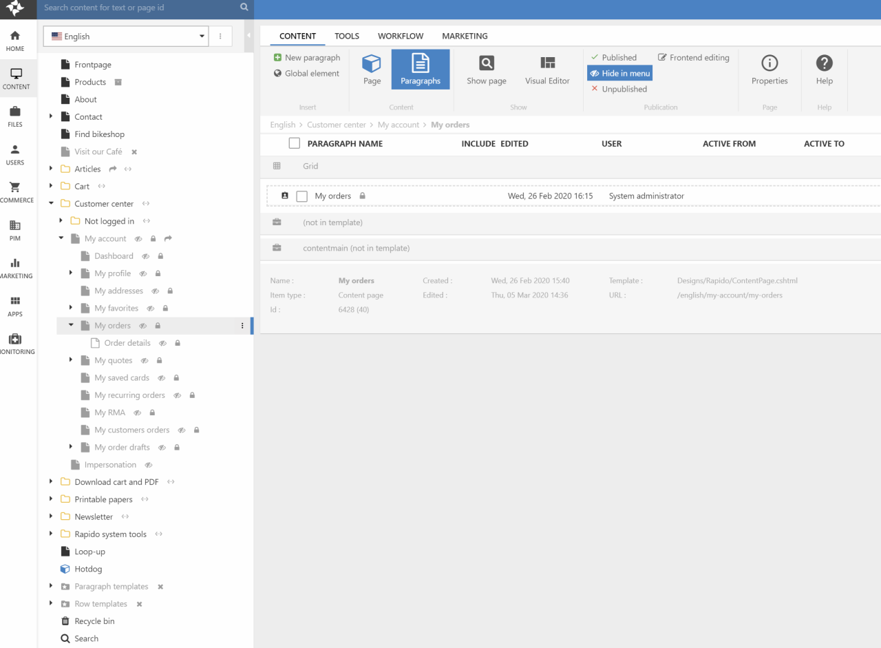 1: In the Dynamicweb navigation expand Customer center, My Account and click the page called My Orders. Once it is loaded, click the paragraph with the same name: